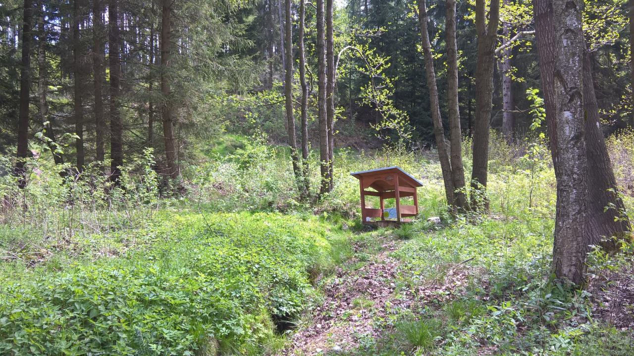 Nachází se v katastru Drmoul v nadmořské výšce 591 m. n. m., GPS N49°56´ 39.1´´E 12°38´26.2´´ , tedy cca 20 metrů od pravého břehu potoka asi 400 metrů proti proudu potoka. Původně v kopané jímce pod svahem Panského vrchu,, zaplněná listím a větvemi, silně naředěna povrchovou vodou. Po vyčištění a obnovení v roce 2014 obcí Drmoul je osazená dutým kmenem stromu a zakrytá stříškou.