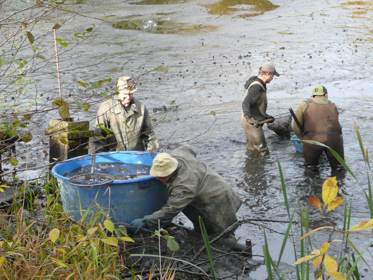 Z výše uvedeného důvodu byly posbírány i škeble, které byly přemístěny na rybník HOŘEJŠÍ.